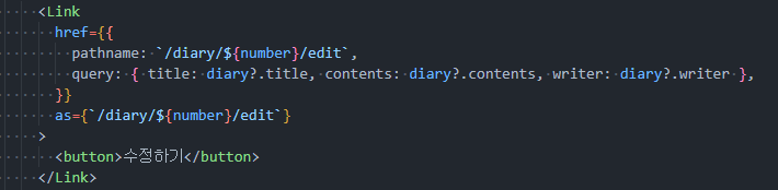 next/Link 컴포넌트에 query로 글의 정보들을 넘겨주기로 했다. 이렇게 하면 url에 쿼리 스트링이 붙어서 사용자들이 볼 수 있는데 as로 보이지 않게 했다.